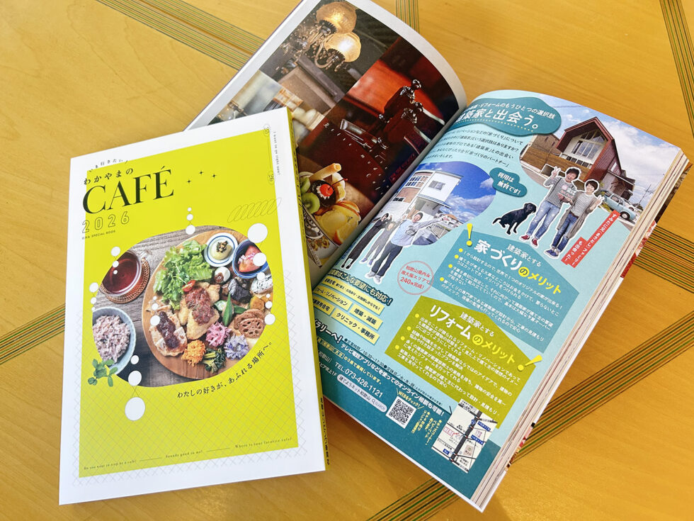 2025.11.08 [ブログ] 「わかやまのCAFE」に広告掲載されています! 和歌山リビングが発行する「わかやまのCAFE」に建てようネットも広告を掲載。 建てようネットライブラリーの外観にも掲示している「建てようネット和歌山で完成したすみたにさんたちのそれぞれのおうちとご家族の笑顔」が載っています! すみたに兄弟ファミリーの笑顔と一緒に家づくりをされたい方に届きますように♪ こちらの本は和歌山の書店などで販売されています。
